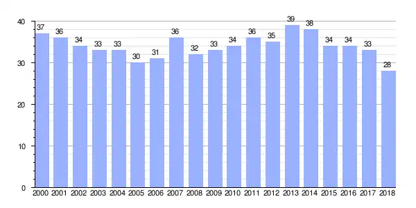 | Gráfica de evolución demográfica de O Rial entre 2000 y 2018 |