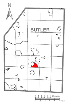![]() Ubicación en el condado de Butler ![]() Ubicación del condado en Pensilvania ![]() Ubicación de Pensilvania en EE. UU. | ||