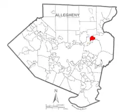 ![]() Ubicación en el condado de Allegheny ![]() Ubicación del condado en Pensilvania ![]() Ubicación de Pensilvania en EE. UU. | ||