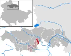 Se encuentra al norte de las llanuras del Thüringer Becken, en un altiplano de la ladera sur del sistema montañosa del Hainleite. Los poblados circundantes son: Al Norte el sistema montañosa del Hainleite, tras el cual están los poblados de Hachelbich (noroeste), Göllingen (norte), Seega (noreste). Al este se encuentra Günserode. Hacia el sur se extienden las llanuras del Thüringer Becken, donde se encuentran: al sureste Bilzigsleben, Al sur Frömmstedt, al suroeste Niederbösa y al oeste Trebra.