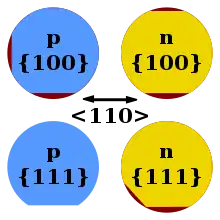 En las obleas por debajo de 200 mm normalmente se indican los planos cristalográficos de alta simetría mientras que en las antiguas (aquellas con diámetro inferior a 100 mm) se indican la orientación de la oblea y el tipo de dopado (ver ilustración). Las obleas modernas cuentan con una muesca para referir esta información, evitando así el desperdicio de material .