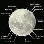 ![]() Mapa de los principales mares y cráteres lunares. |