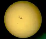 - Las manchas solares: son más delicadas de observar puesto que requieren una buena visión y deben tener un tamaño consecuente con el fin de ser visibles al ojo desnudo. Son la base de las protuberancias solares sobre la superficie de la estrella y son el signo de la actividad del astro, que varía cíclicamente a lo largo de los años. Solo es posible observarlas sin ningún instrumento en el momento cumbre del fenómeno, y se presentan bajo la forma de manchas oscuras sobre el disco. Una observación de un día a otro permite observar su desplazamiento (y a veces su evolución) debido a la rotación propia del Sol y a la de la Tierra en torno a este.
