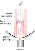 El Schmidt es un modelo cuyas superficies son todas esféricas, consiguiendo un instrumento fácil de fabricar. Emplea un diseño "cassegrain" con un plato corrector en el frente del tubo que "corrige" todas las aberraciones que pudiera tener el sistema esférico (y además proporciona la ventaja de conseguir un tubo herméticamente cerrado). El espejo secundario en un telescopio Schmidt se monta en el plato corrector.