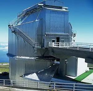 ![]() De izquierda a derecha, el William Herschel Telescope, Dutch Open Telescope, Carlsberg Meridian Telescope, Swedish Solar Telescope, Isaac Newton Telescope y Jacobus Kapteyn Telescope del Observatorio Roque de los Muchachos. | ||