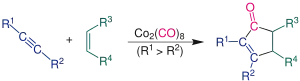 Se necesita octacarbonilo de dicobalto en la reacción de Pauson-Khand para la síntesis de ciclopentenonas. Este proporciona hasta dos ligandos carbonilo en la coordinación con el alquino que se inserta posteriormente para formar la ciclopentenona.