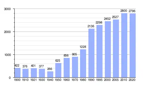 | Gráfica de evolución demográfica de Ocuapan entre 1900 y 2020 |