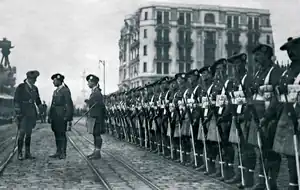 Aviadores griegos en el aeródromo de San Stefano después del Armisticio de Mudros.