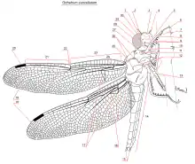 Los odonatos (Odonata, del griego οδοντός, odontós: ‘diente’) también conocidos como cordeleros[cita requerida] son un orden de insectos con unas 6000 especies actuales,[1] que incluye formas tan conocidas como las libélulas y los caballitos del diablo. Los adultos muestran un aspecto muy característico, con una cabeza más ancha que el resto del cuerpo, un abdomen largo y delgado y cuatro alas membranosas transparentes. Viven asociados a ambientes acuáticos, que son necesarios para el desarrollo de sus náyade; no tienen fase de pupa y, por tanto, su metamorfosis es simple (hemimetabolía).