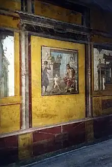 En las excavaciones arqueológicas de las casas romanas se le identifica por su tamaño, más amplio que los dormitorios y la presencia de una decoración interior.