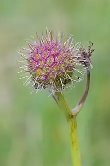 Es una planta perenne que alcanza de 50 cm a 1 metro de altura, el tallo delgado radical o hinchado, hueco, surcado y erguido. La inflorescencia con flores blancas o rosadas, en umbelas. El fruto globoso en umbelas.