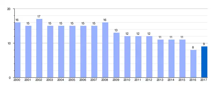 | Gráfica de evolución demográfica de Ogueta entre 2000 y 2017 |