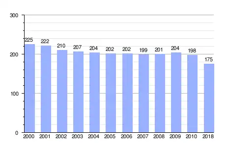 Población de derecho (2000-2010) según los censos de población del INE a 1 de enero de cada año.[10] |