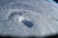 El ojo es la región de condiciones meteorológicas generalmente más calmadas que se forma en el centro de los ciclones tropicales fuertes. Esta región aproximadamente circular suele tener un diámetro de entre 30 y 65 kilómetros y está rodeada por la pared del ojo, un anillo de tormentas convectivas donde ocurren las segundas condiciones más severas en el ciclón. La presión atmosférica más baja se registra en el ojo, donde puede ser hasta un 15 % inferior a la presión fuera de la tormenta.[1]
