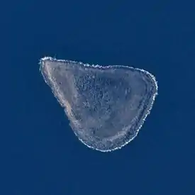 La forma de la isla es triangular, similar a la de la isla de Daito Norte, y el punto más alto está en la parte norte de la isla, a 31,1 metros sobre el nivel del mar. La elevación es ligeramente superior desde el sureste al norte y desde el sureste al noroeste, siendo la parte central de la isla una depresión de 10 a 15 metros más baja que la zona circundante.[3][4] La costa de la isla también es un acantilado y está rodeada de arrecifes de coral.