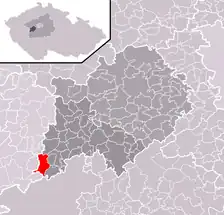 Se encuentra ubicada al oeste de la región y de Praga, en la cuenca hidrográfica del río Berounka —un afluente izquierdo del río Moldava—, y cerca de la frontera con la región de Pilsen.[1][2]