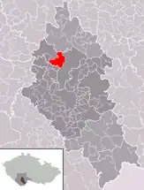 Se encuentra ubicada en el centro-sur de la región, en la zona de la selva de Bohemia, a poca distancia al sur de la ciudad de Praga, de la orilla del río Moldava —el más largo del país, afluente del río Elba— y al norte de la frontera con Austria.[1]