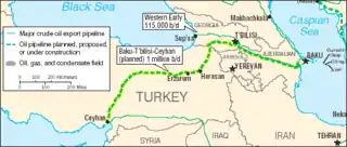 ![]() Ruta del oleoducto Bakú-Tiflis-Ceyhan. | ||
