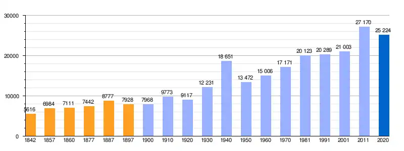Población de derecho (1842-1897, excepto 1857 y 1860 que es población de hecho) según los censos de población del siglo XIX. Población de derecho (1900-1991) o población residente (2001-2011) según los censos de población del INE. Población según el padrón municipal de 2020 del INE. |