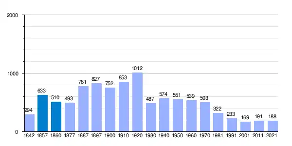 | Gráfica de evolución demográfica de Olula de Castro[7] entre 1842 y 2021 |