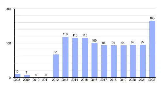 Deuda viva del Ayuntamiento de Olula de Castro en miles de euros según datos del Ministerio de Hacienda y Ad. Públicas.[10] |