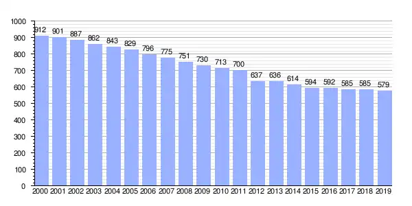 | Gráfica de evolución demográfica de Olveira (parroquia) entre 2000 y 2019 |