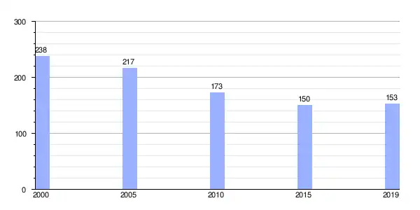 | Gráfica de evolución demográfica de Olveira (aldea) entre 2000 y 2019 |
