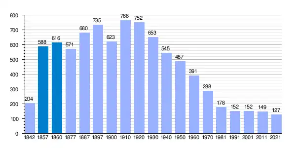 | Gráfica de evolución demográfica de Els Omells de na Gaia[2] entre 1842 y 2021 |