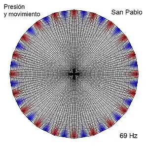 Rayleigh desarrolló teorías ondulatorias para el caso de la catedral de San Pablo en 1910[6] y 1914.[7] El ajuste de las ondas sonoras dentro de una cavidad implica la física de la resonancia, basada en la interferencia de las ondas. En función de la geometría del recinto, el sonido puede producir este fenómeno solo en ciertos tonos, como en el caso de los tubos de órgano. El sonido forma patrones llamados modos, como se muestra en el diagrama.[1]