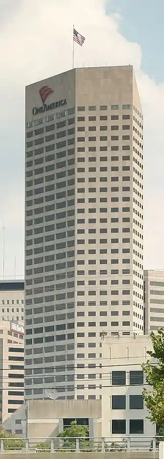 La OneAmerica Tower, anteriormente AUL Tower, es un edificio en 200 North Illinois Street en el centro de la ciudad de Indianápolis, en el estado de Indiana (Estados Unidos). Mide 162,46 metros de altura y tiene 38 pisos.[2] Es utilizado por diversas empresas para oficinas. El edificio se inauguró en 1982 y está revestido con piedra caliza de Indiana.[3] De 1982 a 1990, OneAmerica Tower fue el edificio más alto del estado de Indianápolis.[2] La OneAmerica Tower es actualmente el segundo edificio más alto de la ciudad detrás de Salesforce Tower,[4] así como el segundo más alto de Indiana.