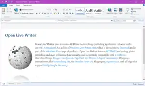 Open Live Writer (también conocido como OLW) es una aplicación de escritorio para publicación de blogs liberada por la Fundación .NET. Es un fork de Windows Live Writer 2012, que fuera desarrollado por Microsoft y parte de los productos Windows Live. Open Live Writer incluye edición WYSIWYG, funcionalidades para publicación de fotos y mapas, y actualmente es compatible con WordPress (autoalojado), Blogger, y WordPress.com, con planes para soportar más plataformas en el futuro. El código fuente del software está disponible en GitHub bajo Licencia MIT.