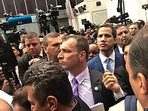 ![]() Juan Guaidó intentando ingresar a la Asamblea Nacional de Venezuela ante el bloqueo policial (5 de enero de 2020). | ||