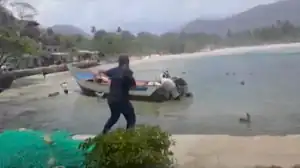 Un enfrentamiento inicial en la madrugada del 3 de mayo involucró al primer bote y a la Armada venezolana. Goudreau dijo que el segundo bote, que aún no había llegado a Venezuela, se estaba quedando sin combustible en este punto, pero que barcos de reabastecimiento de combustible fueron enviados desde Aruba para ayudar a la fuerza de incursión. En la lucha inicial, ocho soldados fueron arrestados en la orilla. Otros seis fueron asesinados en la playa, al inicio habían sido reportados como ocho. Goudreau también declaró que tenía casas seguras a lo largo de la costa para sus hombres. Se compartieron videos del enfrentamiento, incluidos disparos, en las redes sociales; el gobierno venezolano reconoció por primera vez el ataque a las 7:30 a. m., en un anuncio del ministro del Interior, Néstor Reverol. Uno de los hombres asesinados fue el excapitán del ejército Robert "Pantera" Colina.