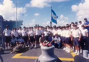 ![]() Tripulantes del ARA Drummond junto a los US Navys durante el operativo | ||||