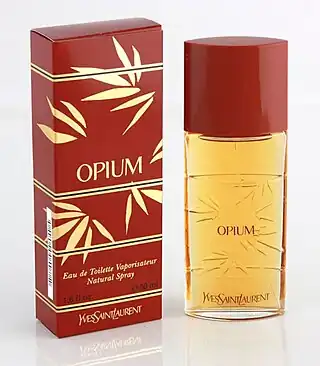 Opium es una fragancia de estilo oriental[1] creada por la casa de moda Yves Saint Laurent (YSL) en colaboración con los perfumistas Jean Amic y Jean-Louis Sieuzac de Roure, y siendo lanzado por vez primera en 1977.[2] En sus notas altas predominan las mezclas de frutas y especias, con naranja mandarina,[3] ciruela, cilantro y pimiento negro,[2] así como también hojas de laurel.[4] Dentro de sus notas medias o de corazón, predominan el jazmín, la rosa y el Lilia del Valle,[2] en contraste con el clavel, la canela y el durazno, así como pequeñas notas de cardamono.[4] En sus notas bajas destacan las maderas dulces, así como el sándalo, madera de cedro, mirra, opopónaco, ládano, benjuí y castóreo,[2] en adición al ámbar, incienso, musgo, pachuli, bálsamo de tolú y vetiveria.[4]