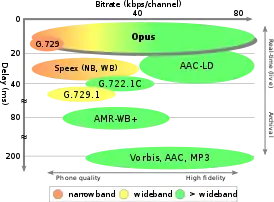 El códec de audio Opus destaca por su baja latencia, lo que lo hace ideal para las aplicaciones que usan la transmisión de audio a través de Internet, tales como: