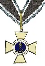 La medalla consistía en una cruz esmaltada de blanco y bordada de oro, en cuyo centro había un medallón azul prusiano grabado con oro, la inicial del fundador "L" (por Luis III) coronado en oro. Alrededor, una banda esmaltada blanca marcó el año de la fundación "1914" y algunas decoraciones doradas. En el reverso, sin embargo, estaba la inscripción en alemán FÜR VERDIENSTE IM KRIEGE ("Por el servicio de guerra").
