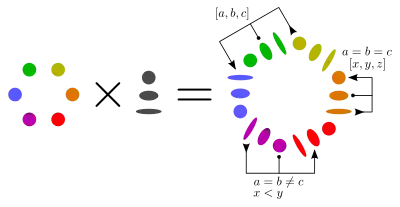 Dado un conjunto ordenado cíclicamente (K, [ ]) y un conjunto ordenado linealmente (L, <), el producto lexicográfico (total) es un orden cíclico en el conjunto producto K × L, definido por [(a, x), (b, y), (c, z)] si se cumple una de las siguientes condiciones:[28]