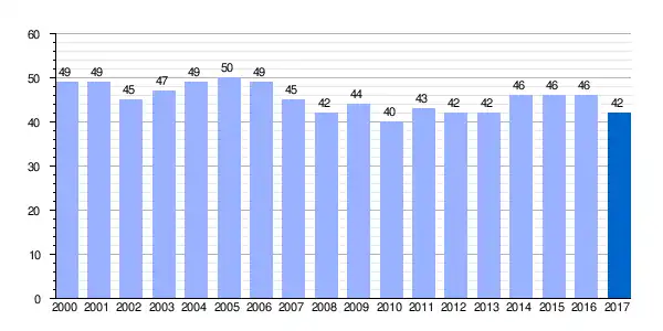 | Gráfica de evolución demográfica de Ordoñana[4] entre 2000 y 2017 |