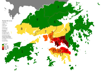 | Sai Kung | 西貢區 | 461 864 | 129,63 | 3563 | ![]() |