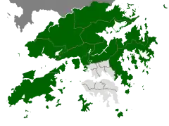 El Gobierno de Hong Kong es unitario y no define ciudades y pueblos como unidades administrativas subsidiarias. Los límites de la ciudad de Victoria, Kowloon y Nuevo Kowloon están establecidos por ley, pero ninguna de estas tres áreas tiene el estatus legal de una ciudad o pueblo. Los distritos de Hong Kong se dibujan de acuerdo con las montañas, las costas y las carreteras, y no coinciden con las extensiones naturales de ninguna zona urbanizada.