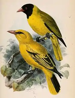 ![]() 1. Oriolus nigripennis 2. Oriolus auratus | ||