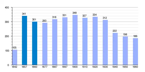 | Gráfica de evolución demográfica de Orna de Gállego[3] entre 1842 y 1960 |