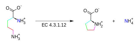 La ornitina ciclodeaminasa (EC 4.3.1.12) es una enzima que cataliza la siguiente reacción química: