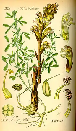 ![]() Orobanche lutea in Otto Wilhelm Thomé, Flora von Deutschland, Österreich und der Schweiz, 1885 | ||