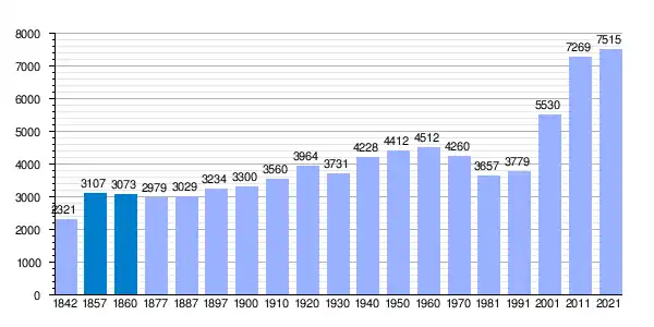 Gráfica de evolución demográfica de Oroso[5] entre 1842 y 2021