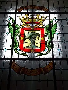 El antiguo escudo de la villa desapareció tras un incendio que destruyó el edificio del ayuntamiento a finales del siglo xix, sin que quedase rastro de su configuración.[11]
