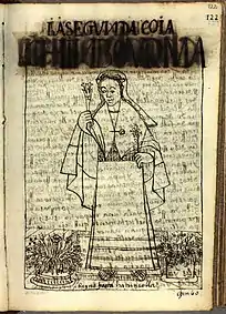 LA SEGVNDA COIA [reina], Chinbo Urma, coya: Era muy hermosa y morena como la primera casta de su madre. Y fue delgada, amiga de tener rramelletes y flores ynquilcona en las manos y de tener un jardín de flores.Felipe Guamán Poma de Ayala. Nueva crónica y buen gobierno. 1615