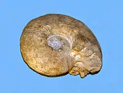 ![]() Concha fósil de Orthaspidoceras schilleri , en exhibición en Galerie de paléontologie et d'anatomie comparée en París. | ||