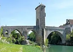 - Le Pont Vieux (El Puente Viejo): Construido sobre el Gave de Pau, y donde destaca su torre central fortificada, es el lugar más característico de Orthez.